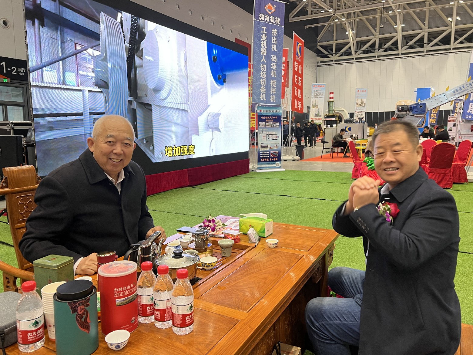 行業(yè)領(lǐng)導(dǎo)來到渤海機械的展廳,和董事長張加祥合影并進行親切交談,對我公司的一直以來的工作予以肯定,希望渤海機械作為磚瓦裝備生產(chǎn)制造的資深企業(yè),再接再厲,繼續(xù)為行業(yè)的發(fā)展做出突出的貢獻。